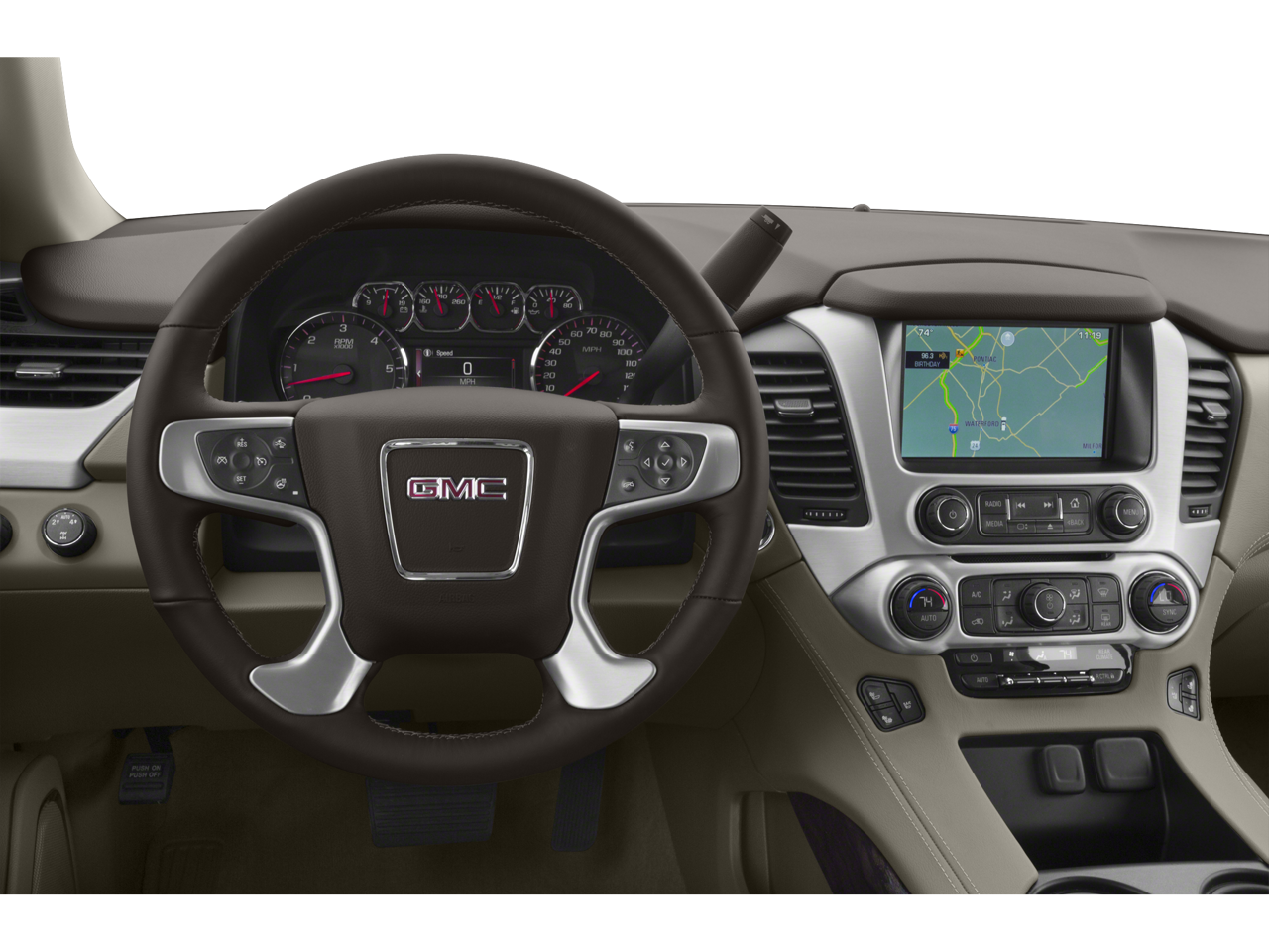 The Yukon XL's spacious interior is packed with premium amenities, including an 8-inch color touch screen navigation system with IntelliLink, wireless charging, and a premium audio system. The Driver Alert and Premium Smooth Ride Suspension packages further enhance the driving experience, providing added safety and comfort.