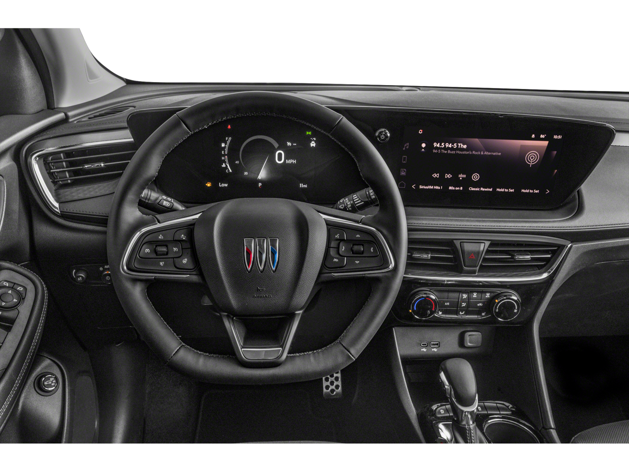 The interior of the Encore GX Sport Touring is thoughtfully designed to keep you comfortable and connected. Enjoy the convenience of features like 2 USB Ports, a 7-Speaker Enhanced Performance Audio System, and Wireless Apple CarPlay/Wireless Android Auto. The Leatherette Seat Trim and Sport Steering Wheel add a touch of refinement to every drive.